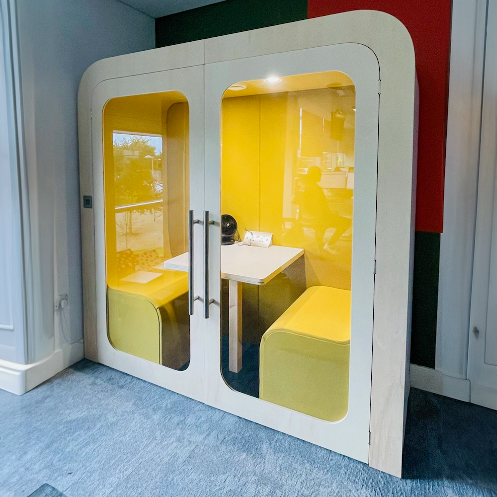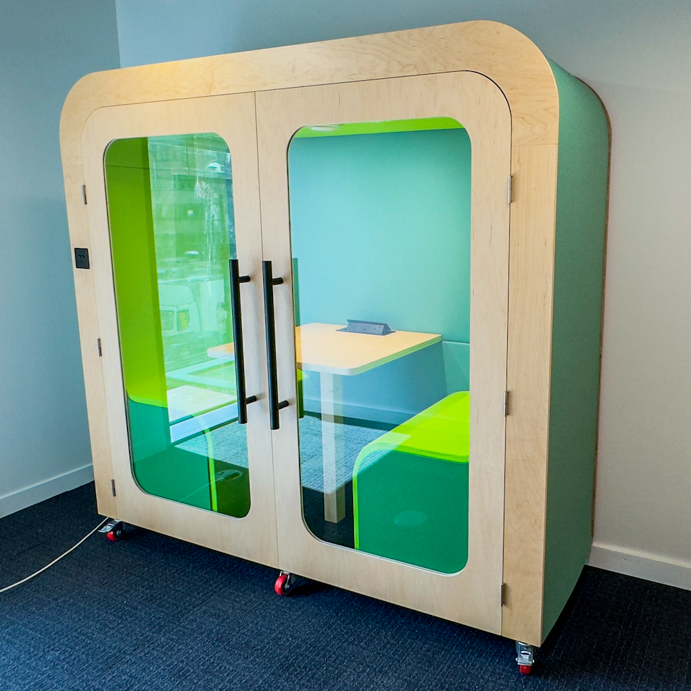 The Acoustic Pod is engineered to provide unparalleled sound reduction in busy workspaces. This fully enclosed pod is perfect for private calls, video conferences, or moments of deep focus without interruptions. Available in single and double configurations, it is ideal for open-plan offices, coworking spaces, and any environment where sound control is a priority. With optional integrated power outlets, USB ports, and custom lighting, the Acoustic Pod is a versatile addition to the modern workspace.