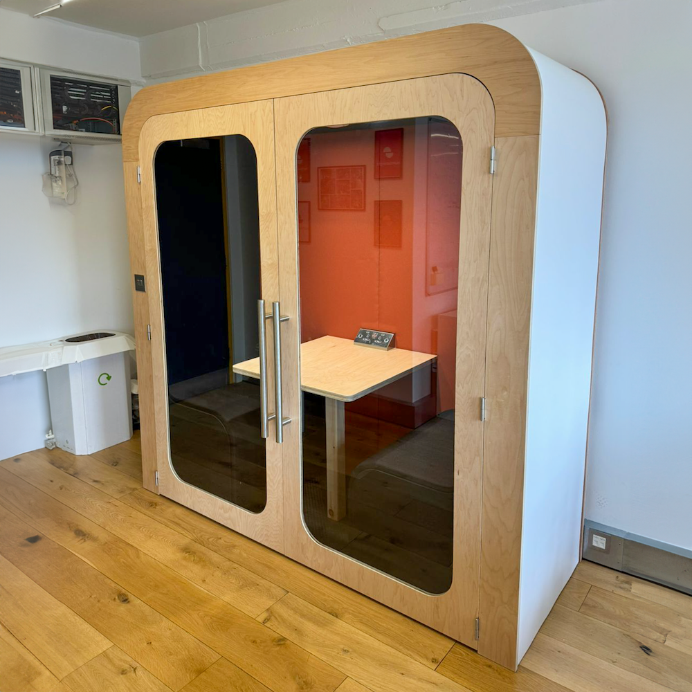 The Dapapod Double Office Pod is a stylish, sound-reducing workspace designed for two, offering a calm, professional setting ideal for focused collaboration, client meetings, or uninterrupted calls. Tailored for open-plan offices, this pod reduces ambient noise by up to 30 decibels, creating a noticeably quieter environment—while maintaining airflow, comfort, and connection.
