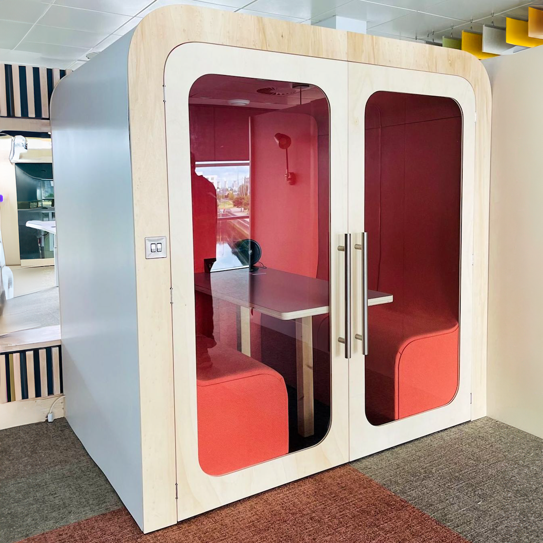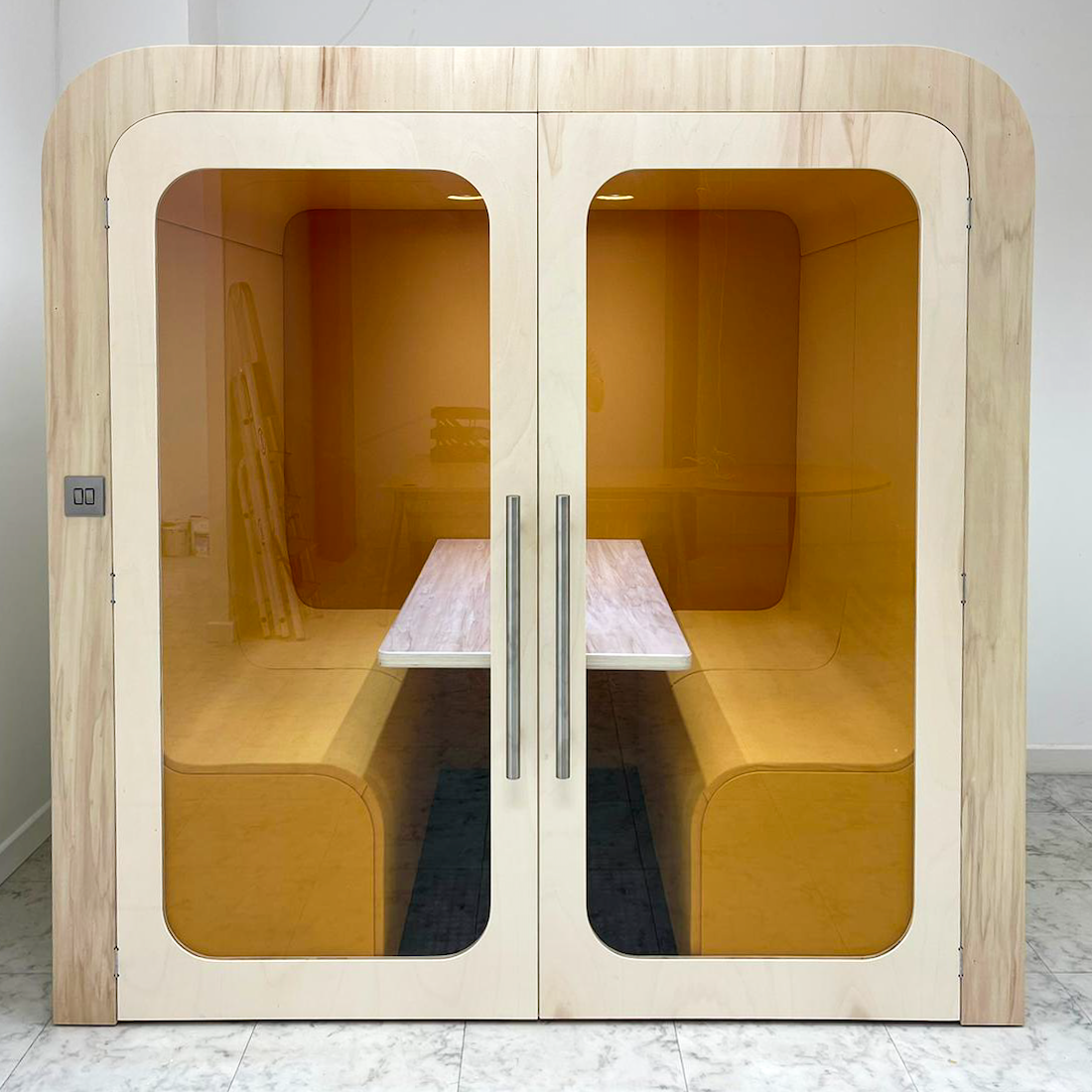 This spacious four-person pod is crafted to foster productive team interactions. Utilising premium acoustic materials, it effectively reduces external noise, creating a tranquil environment for brainstorming and discussions. With customisable options, the pod effortlessly complements any office decor. The ergonomic seating is designed for comfort during extended sessions, ensuring a productive and pleasant experience. Built with durability in mind, this pod combines style with practicality for long-lasting use.
